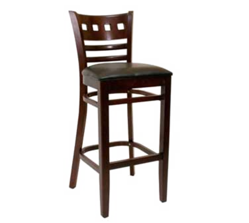 Bar Stool, ladder back with square cut-outs on top, seat to be specified, beech wood frame (finish to be specified), footrest