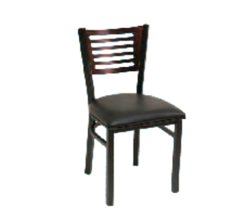 Side Chair, wood back with strips cutout, wood back & seat to be specified, welded 1-1/8" square metal tubing, textured black powder coat finish