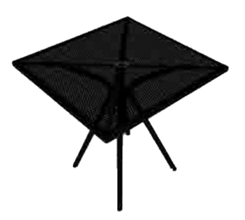 Table, 30" x 30", square, round top mesh top, with umbrella hole, standard height, designed for outdoor use, metal, black powder coat finish, Quick Ship
