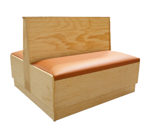 Standard Booth, double, 46" long x 36" high, bead board back, wood platform seat with 2-1/2" thick upholstered seat pad, wood top & end caps, seat base and inside back, grade 6 uph.