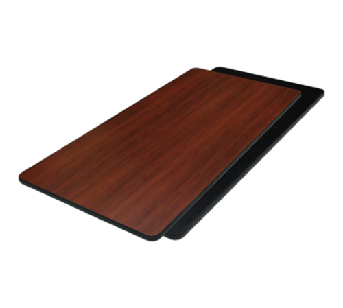 Reversible Table Top, rectangle, 30" x 60", 2" radius corners, double laminate with black T-mold edge, dark mahogany/black, Quick Ship