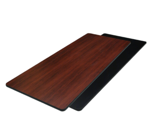 Reversible Table Top, rectangle, 30" x 72", 2" radius corners, double laminate with black T-mold edge, dark mahogany/black, Quick Ship