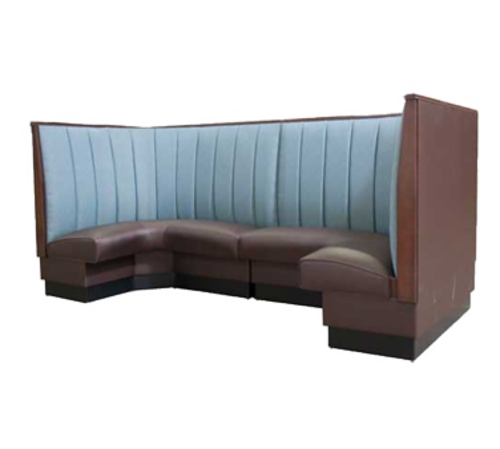 Corner Booth, 1/2 circle, 46" x 88" x 46"L, 36" high, 12-channel back, sinuous spring seat with connecting links, upholstered, heavy duty hardwood frame, 4-3/4" high vinyl kick base, finished outside back on the returns, grade 6 uph.