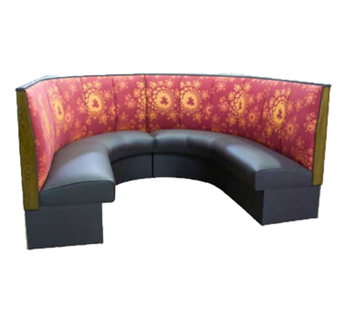 Corner Booth, 1/2 circle, 46" x 88" x 46"L, 42" high, 3-channel back, sinuous spring seat with connecting links, upholstered, heavy duty hardwood frame, 4-3/4" high vinyl kick base, finished outside back on the returns, grade 5 uph.