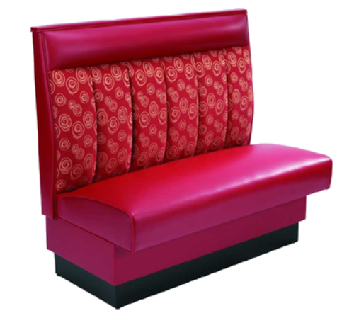 Wall Bench, 42" high, 6-channel back, removable sinuous spring seat with connecting links, upholstered, heavy duty hardwood frame, 4-3/4" high vinyl kick base, COM/grade 4 uph. (price per lineal foot)