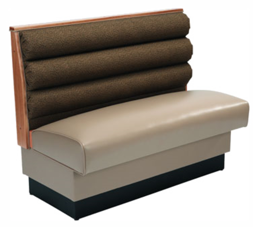 Standard Booth, single, 46" long x 48" high, horizontal channel back, removable sinuous spring seat with connecting links, upholstered, heavy duty hardwood frame, 4-3/4" high vinyl kick base, finished outside back, grade 5 uph.