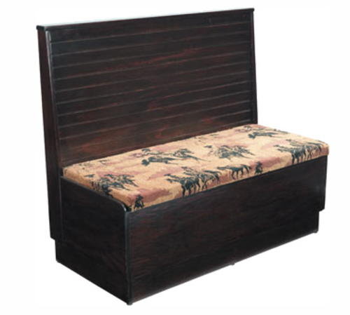 Wall Bench, 42" high, bead board back, wood platform seat with 2-1/2" thick upholstered seat pad, wood top & end caps, seat base and inside back, grade 5 uph. (price per lineal foot)