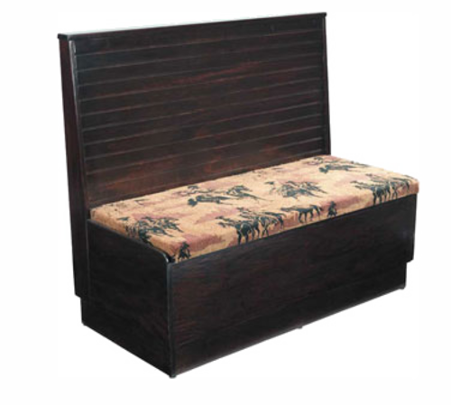 Wall Bench, 48" high, bead board back, wood platform seat with 2-1/2" thick upholstered seat pad, wood top & end caps, seat base and inside back, grade 6 uph. (price per lineal foot)