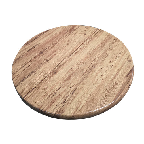 Isotop Table Top, round, 35.5" dia., outdoor/indoor, 1-3/8" drop edge, heat, weather, UV, shock, stain, abrasion and cigarette burn resistant, laminate, gloss, aged pine finish, Quick Ship
