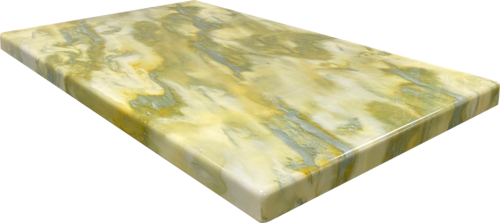 Table Top, rectangle, 24" x 30", resin, 3/4" core with 2" drop edge, 1" radius corners with eased edges, includes base mounting block, high gloss, yellow/ green finish, Quick Ship