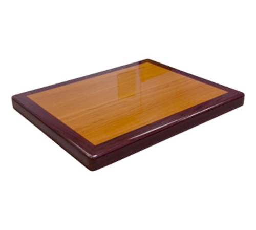 Table Top, square, 36" x 36", resin, 3/4" core with 2" drop edge, 1" radius corners with eased edges, includes base mounting block, high gloss, two-tone cherry/mahogany finish, Quick Ship