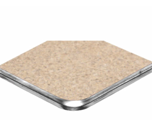 Table Top, square (special corner booth cut), 42" x 42", 1" thick, 2" radius corners, standard Wilsonart® laminate, chrome polyethylene T-mold edge