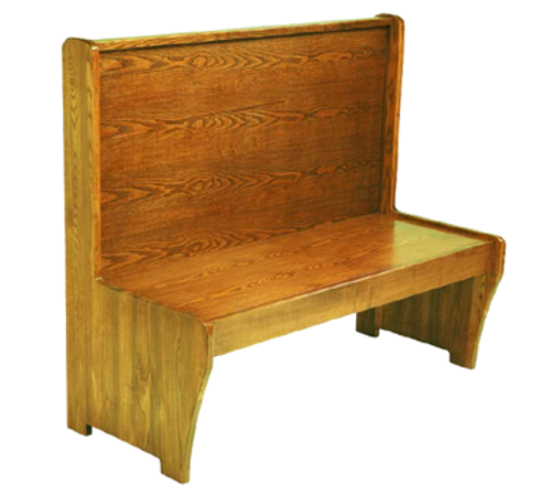 Dining Booth, single, 48" long x 42" high, wood back, upholstered seat pad, open base, finished wood outside back, Asian hardwood frame, dark mahogany finish, grade 5 uph., Quick Ship