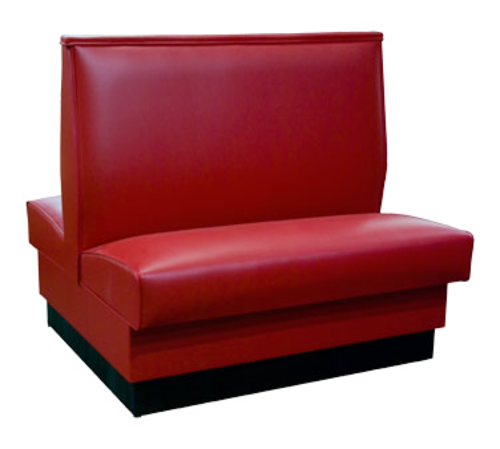 Standard Booth, double, 46" long x 42" high, plain back, removable sinuous spring seat with connecting links, upholstered, heavy duty hardwood frame, 4-3/4" high vinyl kick base, grade 4 uph., Quick Ship