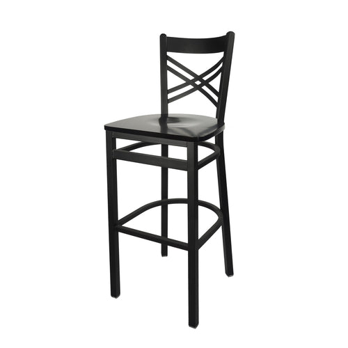 Akrin Barstool, cross back, wood seat, footrest, metal frame with sand black finish
