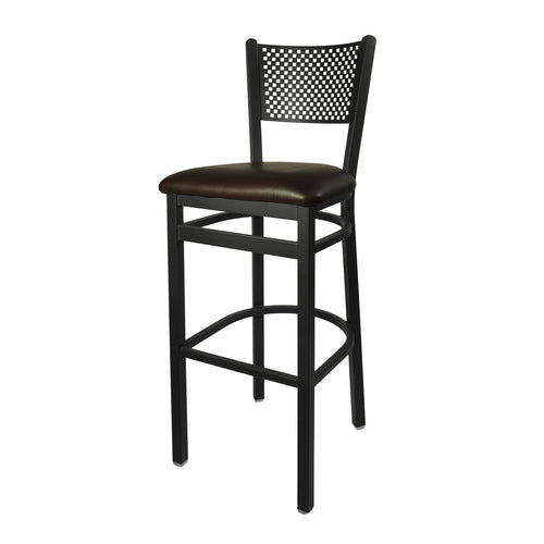 Polk Barstool, perforated back, upholstered padded seat, footrest, metal frame with sand black finish, grade 4 uph.