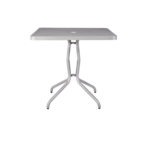 Nexus Table, square, 32" x 32", dining height, (4) leg base, micro mesh top with umbrella hole, powder coated mesh steel, silver finish