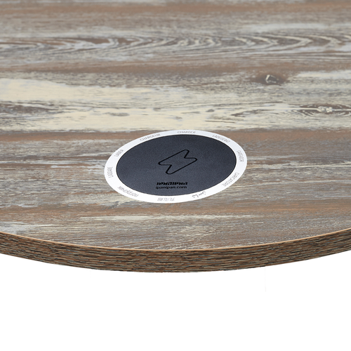 Relic Table Top, 48" round, with (2) flat pack wireless chargers installed,1" thick, MDF core, melamine surface with PVC self-edge, farm house