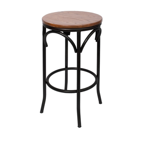 Henry Barstool, backless, autumn ash wood seat, footring, welded tubular, steel frame with rustic finish
