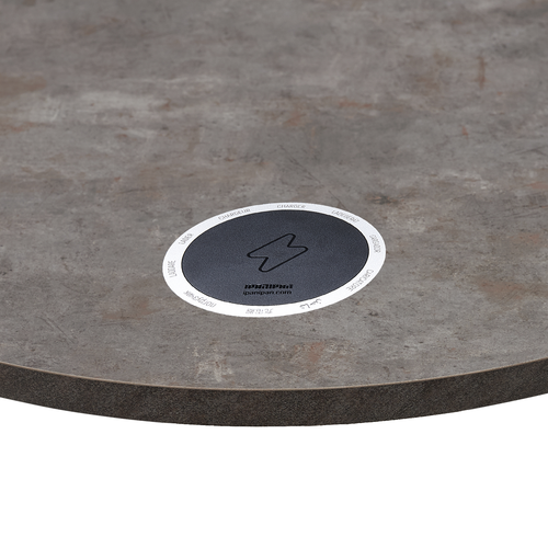 Relic Table Top, 48" round, with (3) flat pack wireless chargers installed, with (3) flat pack wireless chargers installed, 1" thick, MDF core, melamine surface with PVC self-edge, rustic copper