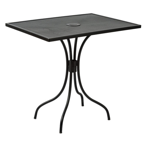 Barnegat Table, 24" x 32", rectangular, dining height, micro-mesh steel top, with umbrella hole, outdoor/indoor, steel base, e-coated, powder coated, black finish