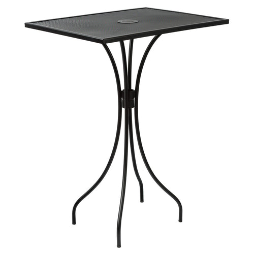 Barnegat Table, 24" x 32", rectangular, bar height, micro-mesh steel top, with umbrella hole, outdoor/indoor, steel base, e-coated, powder coated, black finish
