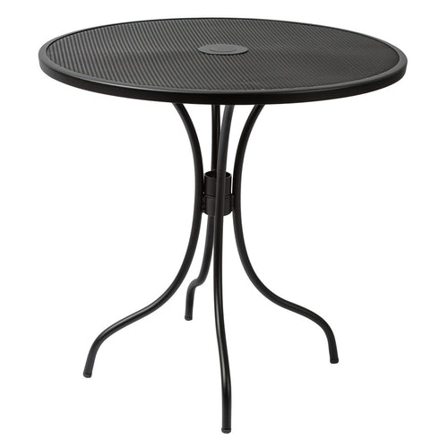 Barnegat Table, 30" dia., round, dining height, micro-mesh steel top, with umbrella hole, outdoor/indoor, steel base, e-coated, powder coated, black finish