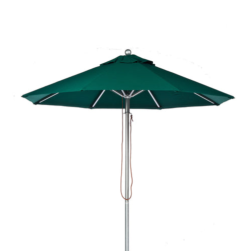 Market Umbrella, 11 ft., round top, 8 panels, 1/8" square aluminum ribs, heavy gauge pulley system, aluminum pole with silver anodized finish, 9 ounce marine grade acrylic fabric