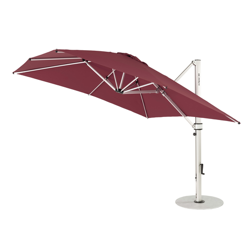 Umbrella, 10 ft., square, cantilever, 360° rotation with infinity tilt system, crank lift, aluminum ribs & pole, stainless steel hardware, silver mist finish, 9 ounce marine grade acrylic canvas fabric