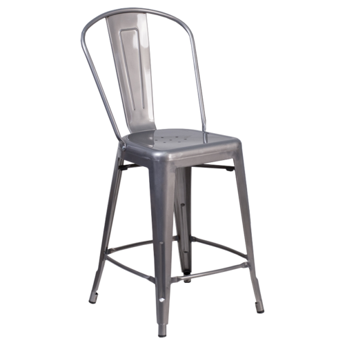 Hudson Series Barstool, indoor use, metal seat & back, all metal frame, foot rest, clear coat finish (assembly required)