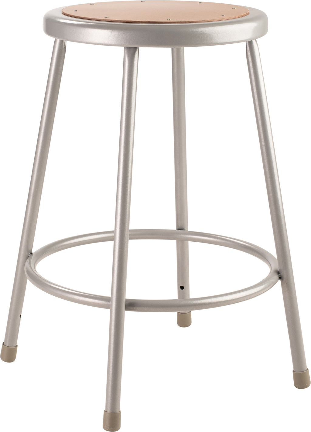 NPS® Steel Stool, 300 lb. weight capacity, 24"H, 14" round seat, 11-1/2” diameter masonite board recessed into the pan with 8 rivets, welded 5/8” O.D. foot ring, 7/8” O.D. 18-gauge steel frame, ANSI/BIFMA, MAS Green Certified