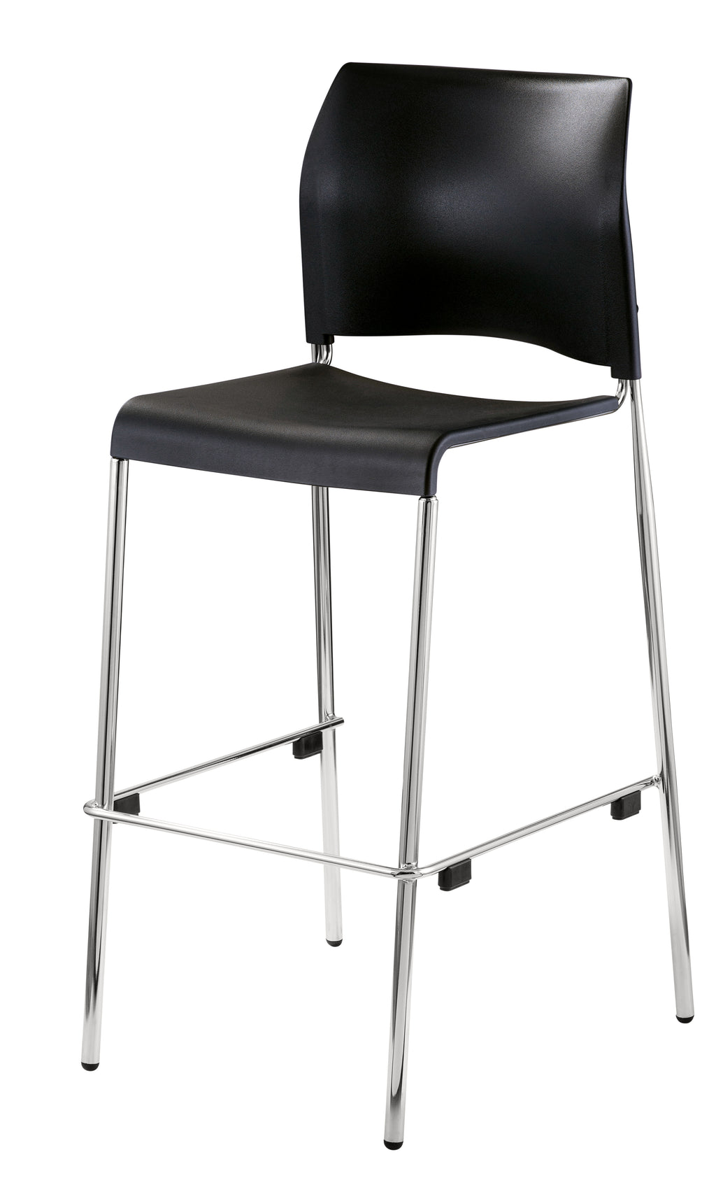 NPS® Cafetorium Bar Stool, 31"H seat, poly back, plastic seat, (4) legs, plastic stacking glides, ANSI/BIFMA, MAS Green Certified