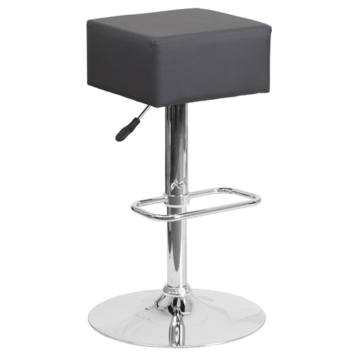 Swivel Bar Stool, adjustable height, contemporary style, backless, upholstered square seat, gas lift, adjustable from counter to bar height, 17-5/8" dia. chrome base, footrest, CA117 fire retardant foam, designed for residential use, gray vinyl (assembly required) (in stock items usually ship within 24 hours)