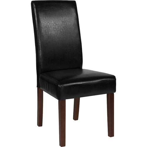 Greenwich Series, mid-century design, LeatherSoft upholstered back & seat, high density CA117 fire retardant foam padding, solid hardwood frame, mahogany wood legs, protective plastic floor glides, black