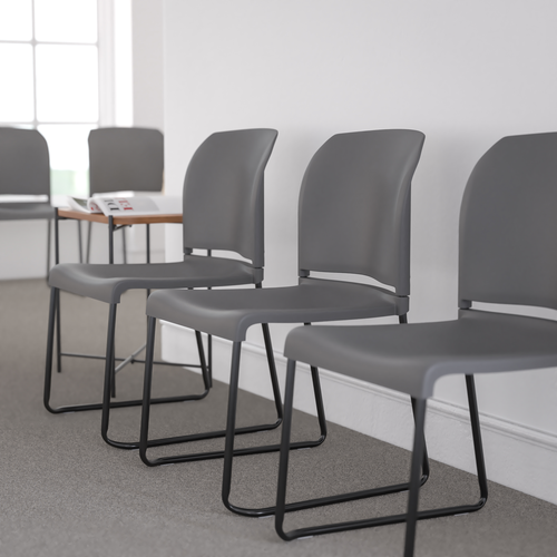 Hercules Series Reception Chair, 880 lbs. weight capacity, contoured design, plastic floor glides, metal frame, polypropylene seat & back, gray frame, gray (ships fully assembled) (in stock items usually ship within 24 hours)