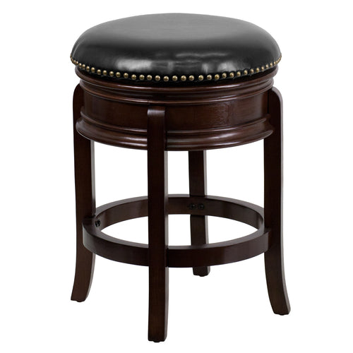 Swivel Bar Stool, 24"H seat, counter height, transitional style, backless, upholstered seat with nailhead trim, CA117 fire retardant foam, wood frame with cappuccino finish, footrest, protective floor glides, designed for residential use, black LeatherSoft (assembly required) (in stock items usually ship within 24 hours)
