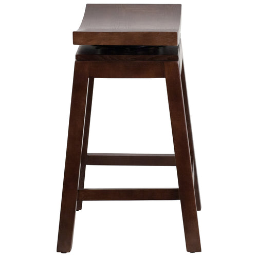 Swivel Bar Stool, 26"H seat, counter height, rustic style, backless, wood saddle seat, auto return swivel, wood frame, cappuccino finish, protective plastic floor glides, designed for residential use (assembly required) (in stock items usually ship within 24 hours)