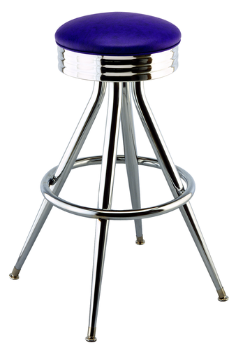 2227 Swivel Bar Stool, backless, upholstered seat with ribbed chrome edge, all welded frame, deluxe pyramid legs, chrome, Spirit Millennium vinyl