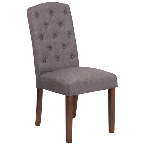 Hercules Grove Park Series Parsons Side Chair, mid-century design, upholstered button tufted back, upholstered seat, high density foam padding, CA117 fire retardant foam, mahogany wood finished legs, plastic floor glides, gray fabric (in stock usually ships within 24 hours)