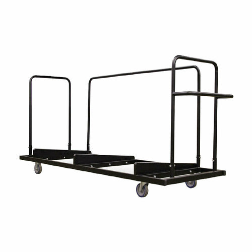 FLT Table Transport Caddy, accommodates 96" long rectangle tables, holds up to (32) 18" wide & (16) 30" FLT tables, 14 ga. tubular steel frame, (4) 5" roller bearing caster (2) fixed (2) swivel, black powder coat finish (5% PRODUCT SURCHARGE - SEE NOTES UNDER DETAILS)