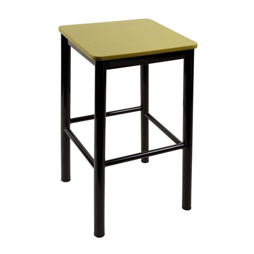 1174 Bar Stool, indoor use, 30" seat height, backless, wood seat, round metal tube legs, foot rest (available in counter height)