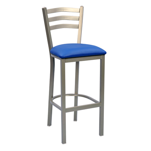 3 Slat Ladder Bar Stool, indoor use, 30" seat height, metal arched ladder back, upholstered seat, foot rest (available in counter height)