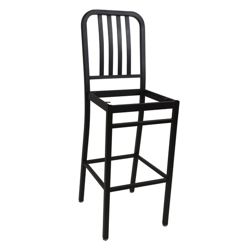 809 Bar Stool, indoor use, 30" seat height, metal vertical slat back, upholstered seat, foot rest (available in counter height)