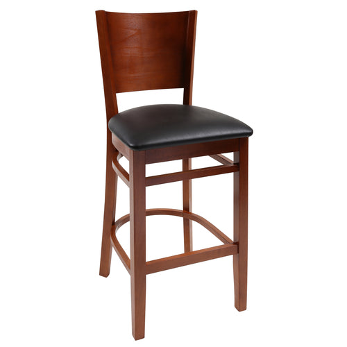 Arlington Bar Stool, indoor use, 30" seat height, solid wood back, upholstered seat, foot rest (available in counter height)
