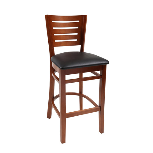 Gretchen Bar Stool, indoor use, 31" seat height, wood back, upholstered seat, foot rest (available in counter height)