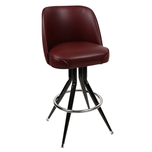 L41 Swivel Bar Stool, indoor use, 30" seat height, bucket upholstered seat and back metal frame, metal frame with glides and foot rest ring
