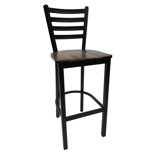 Ladder Bar Stool, indoor use, 30" seat height, metal ladder back, wood seat, foot rest (available in counter height)