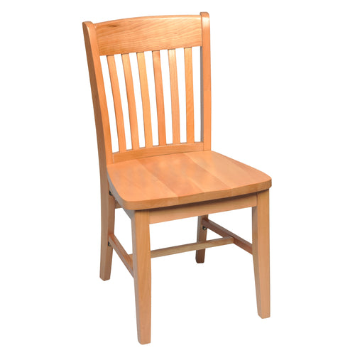 School House Side Chair, indoor use, 19" seat height, wood back, upholstered seat
