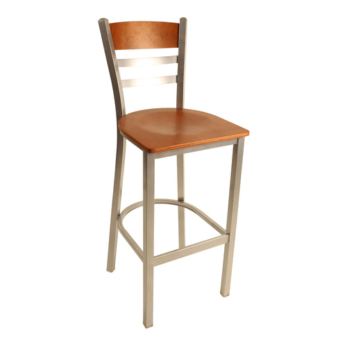 Slot Back Bar Stool, indoor use, 30" seat height, (2) horizontal slat back, wood seat, foot rest (available in counter height)