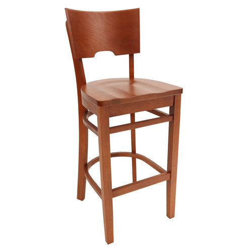 Solid Back Bar Stool, indoor use, 30" seat height, solid wood back, wood seat, foot rest (available in counter height)